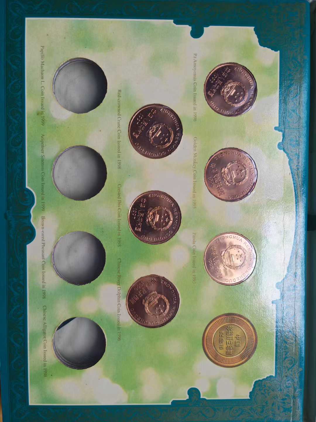 → 大熊猫 、金丝猴 、虎豚 、朱丹 6个动物纪念币