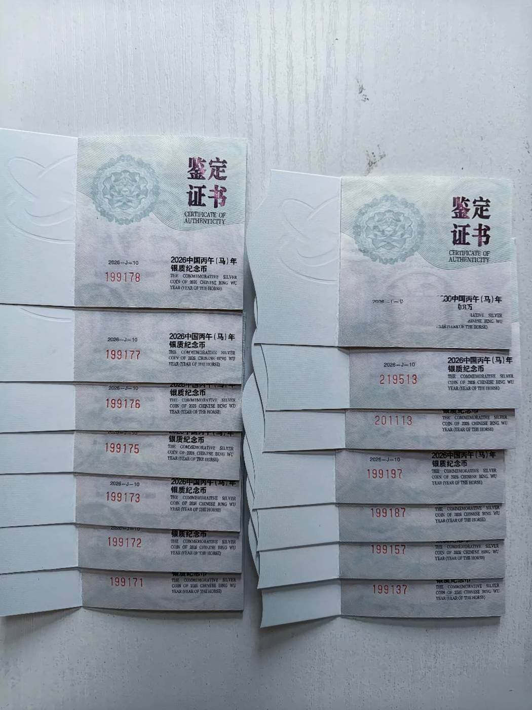 650/套出13套15克彩银马原盒无4无47,基本都是生日号,顺丰包邮不议价,电联确认。款打签名档银行卡。