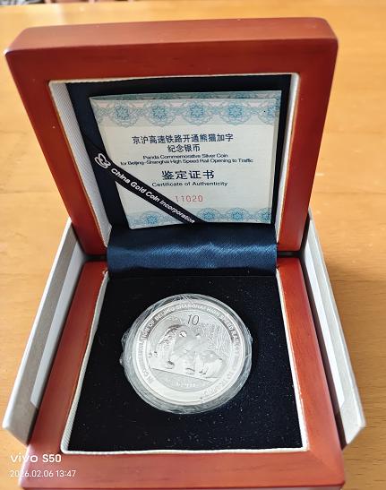 出1枚2011年京沪高铁开通纪念银币!