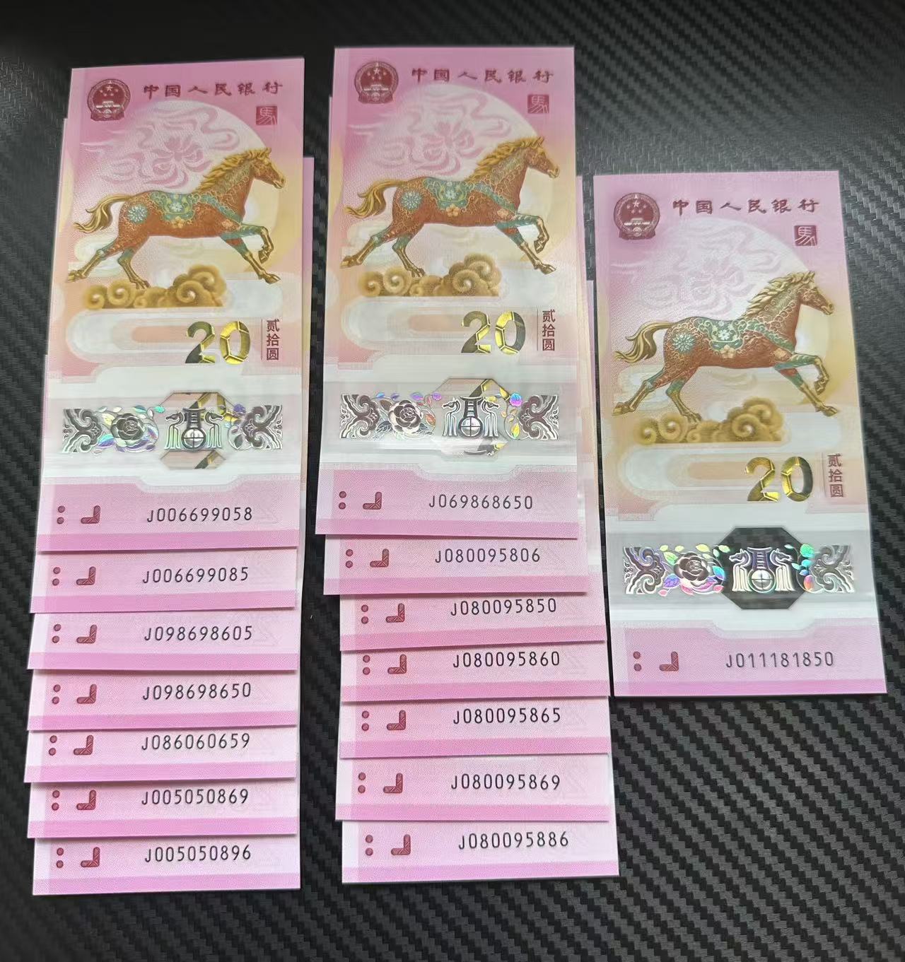 → 低价出14张马钞圆圆刀拆独5金马王 一张0158金福王