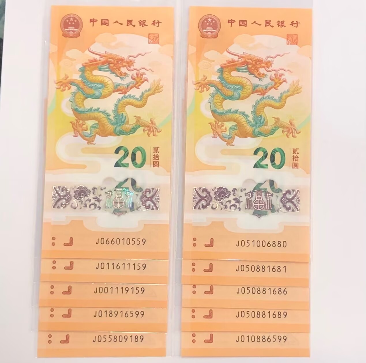 出小龙钞金马号散张共有10张,无修复和无评级,号码请看图谢谢!