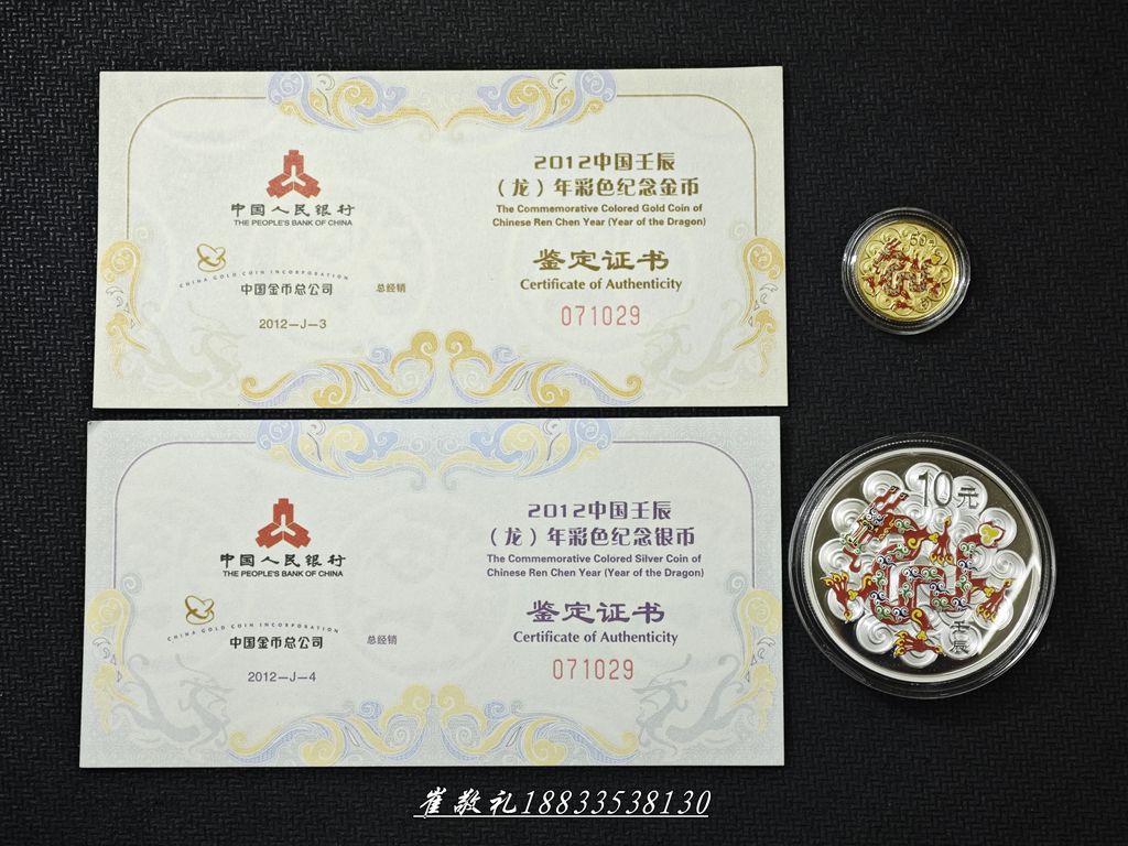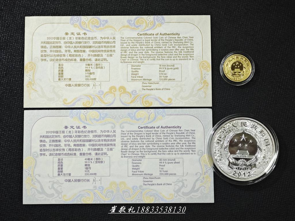 如题见图,2012年彩金银龙1/10金+1盎司1套:4800元包快勿议,证书内外盒配件齐,外盒略显沧桑币无磕碰无划痕正常微氧,本人二十四小时无操作视为撤贴!