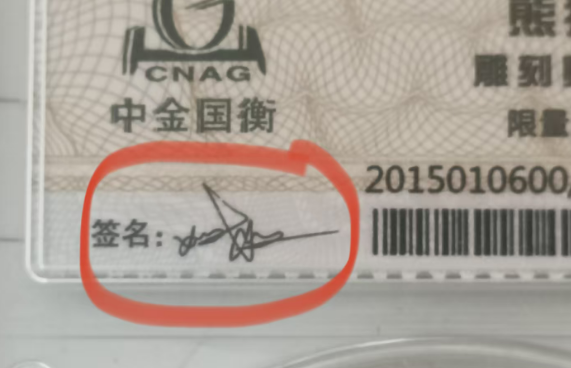 → 820售2015熊猫封装雕刻师邓姗姗签名版