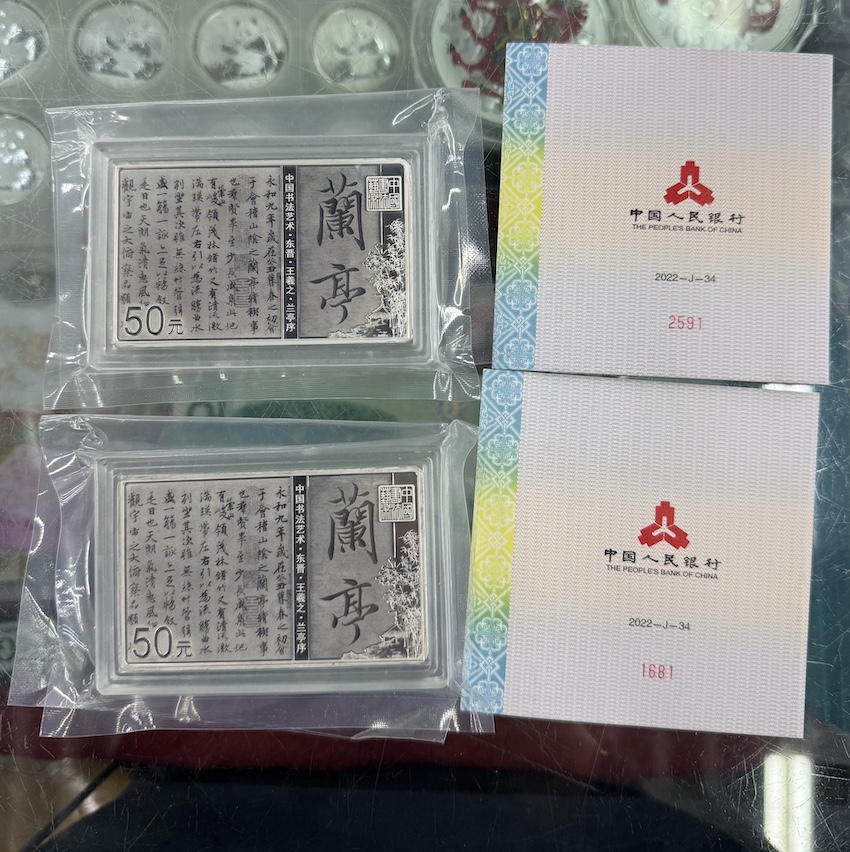 → 出150克兰亭序方银二枚原盒原证