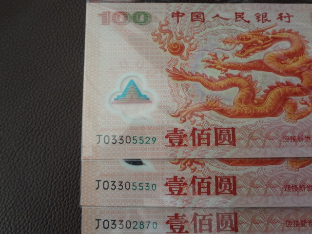全新龙钞3张,一起出1180元张包顺丰快