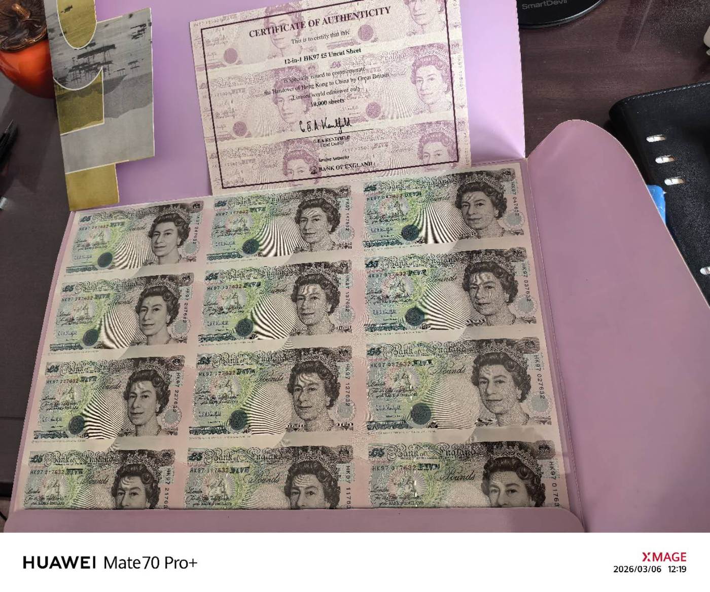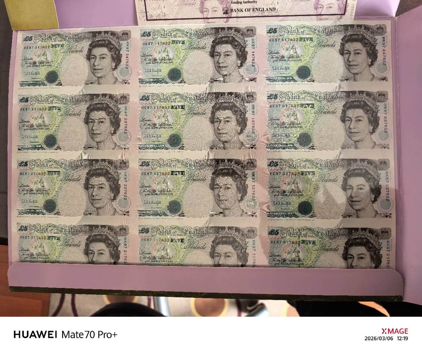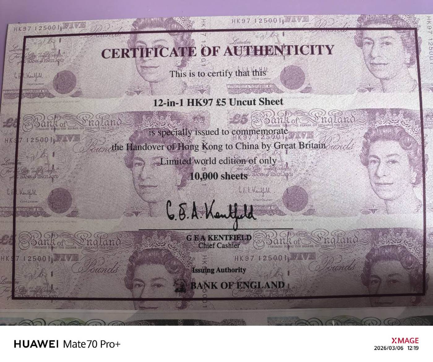 → 出97香港回归5英镑12连体钞
