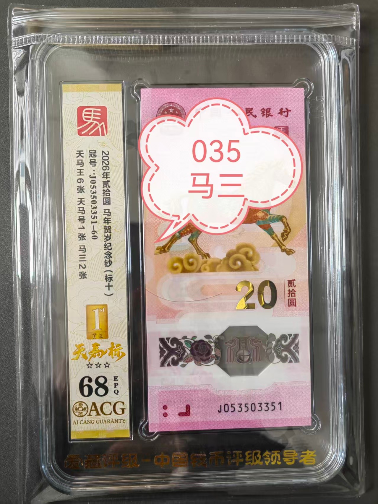 马钞马三035标十1600