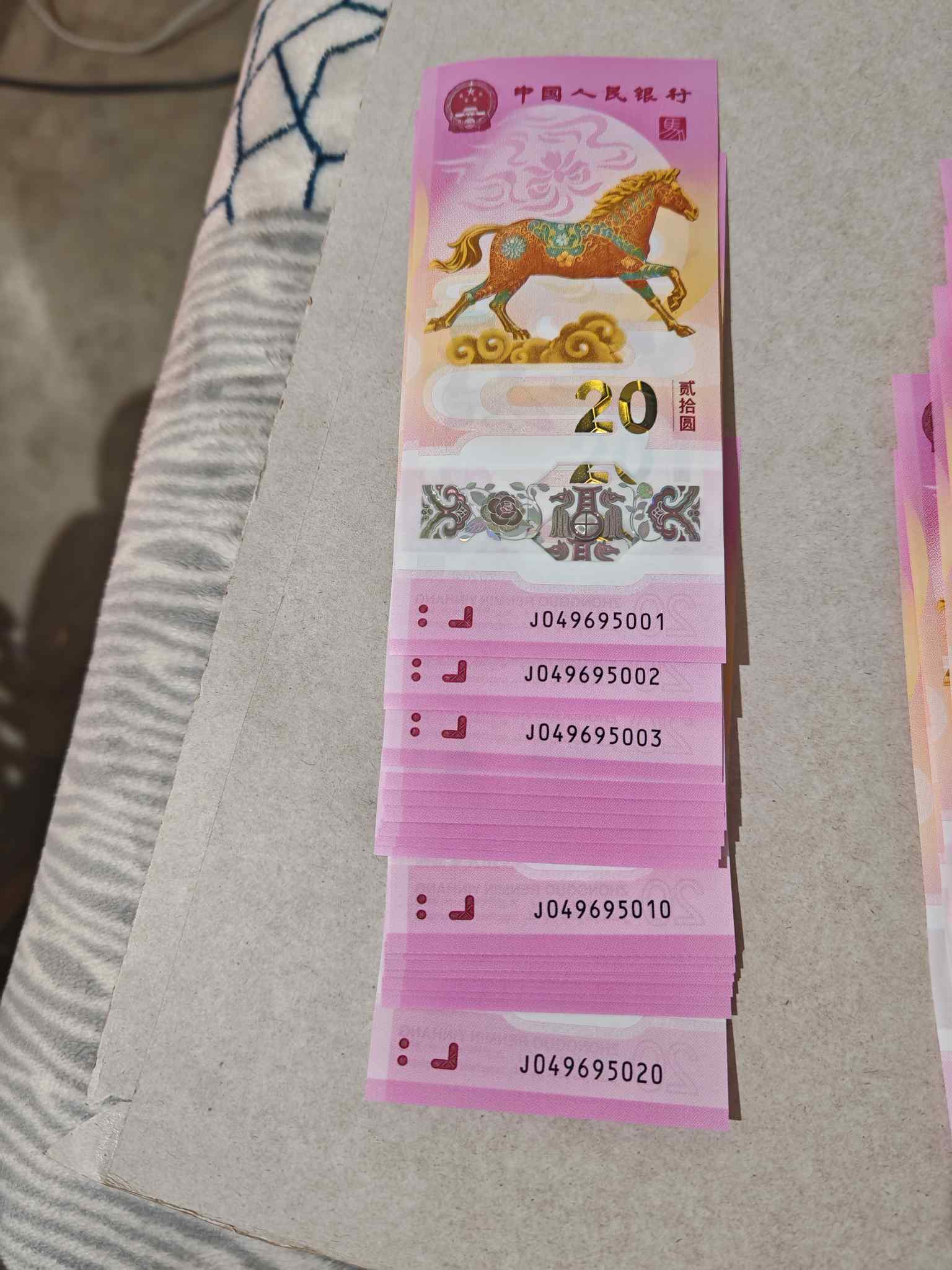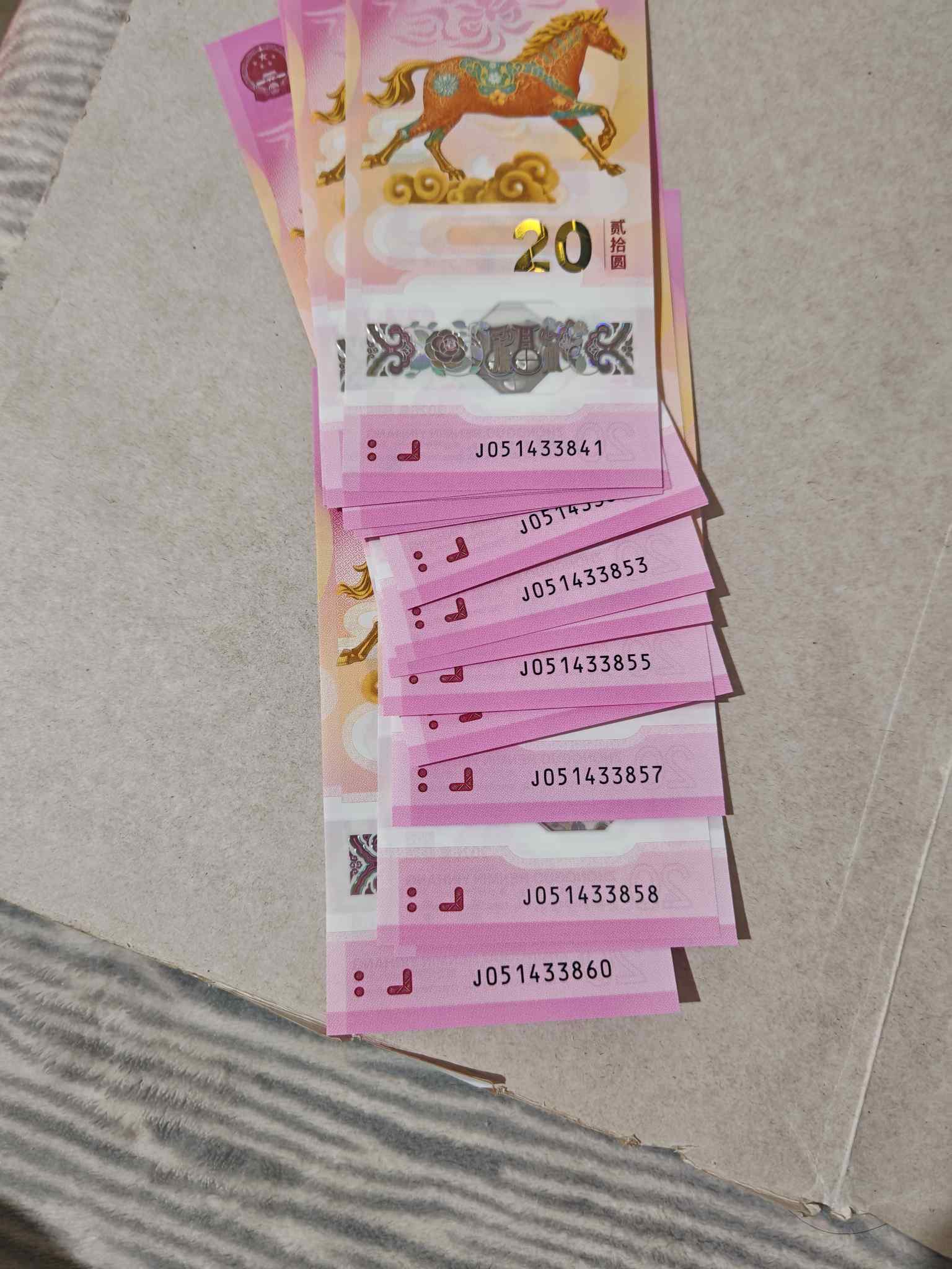 出马钞两组标二十,共40张