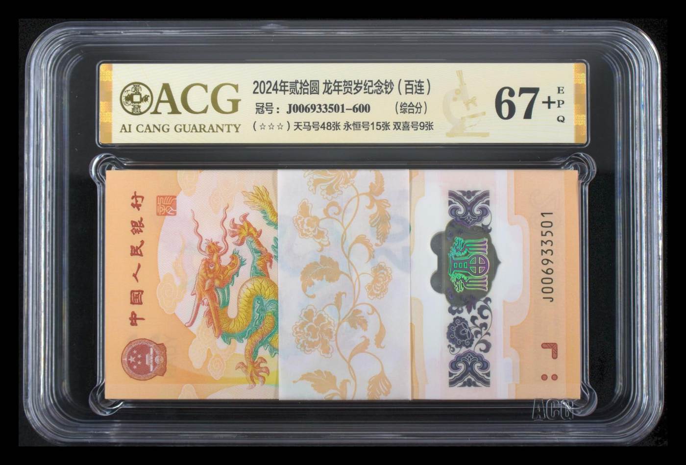 出龙钞无47天马王J006933501标百,爱藏67+