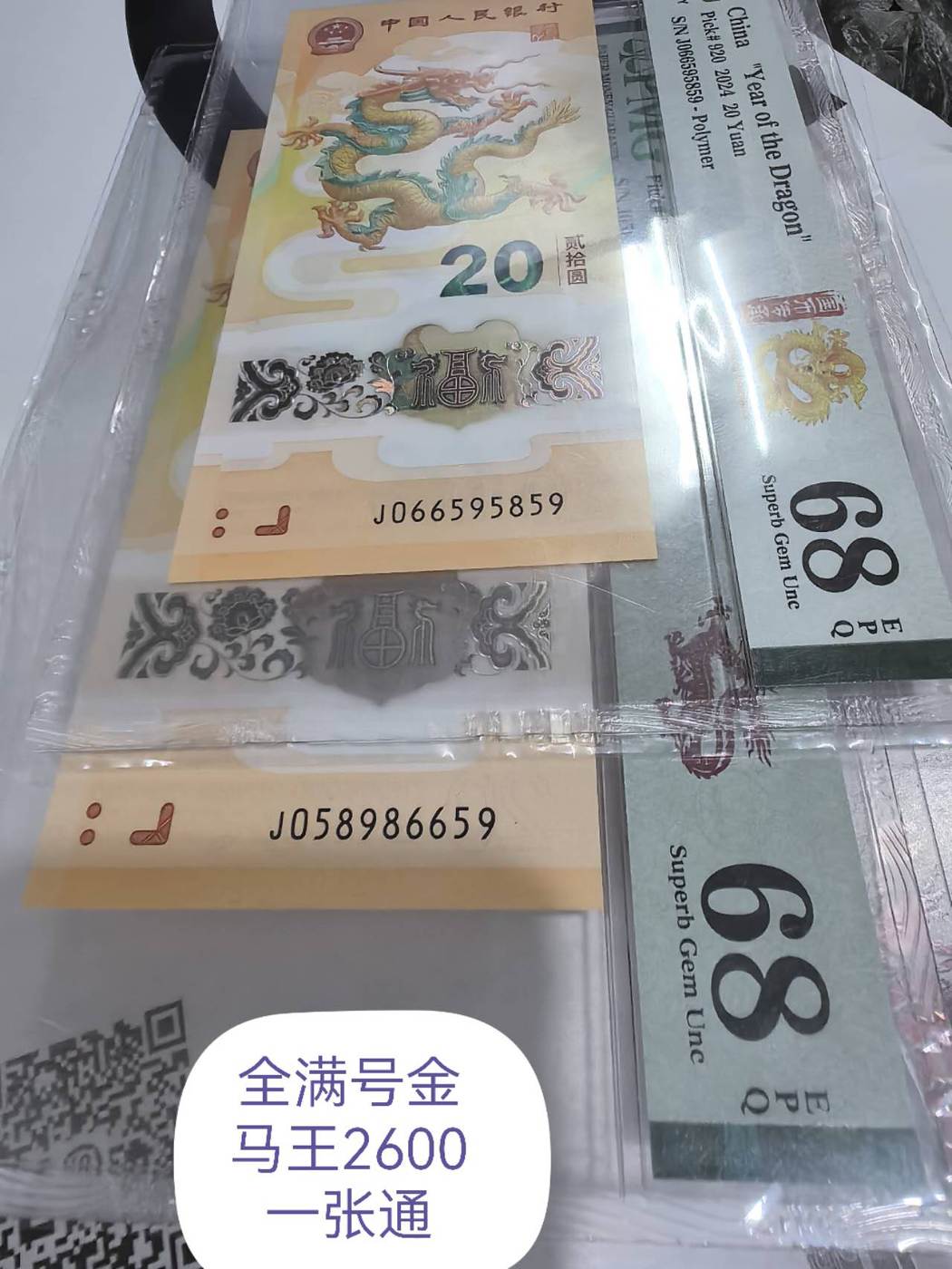 出二张小龙钞全满号金马王pmg68分,2660元一张通走