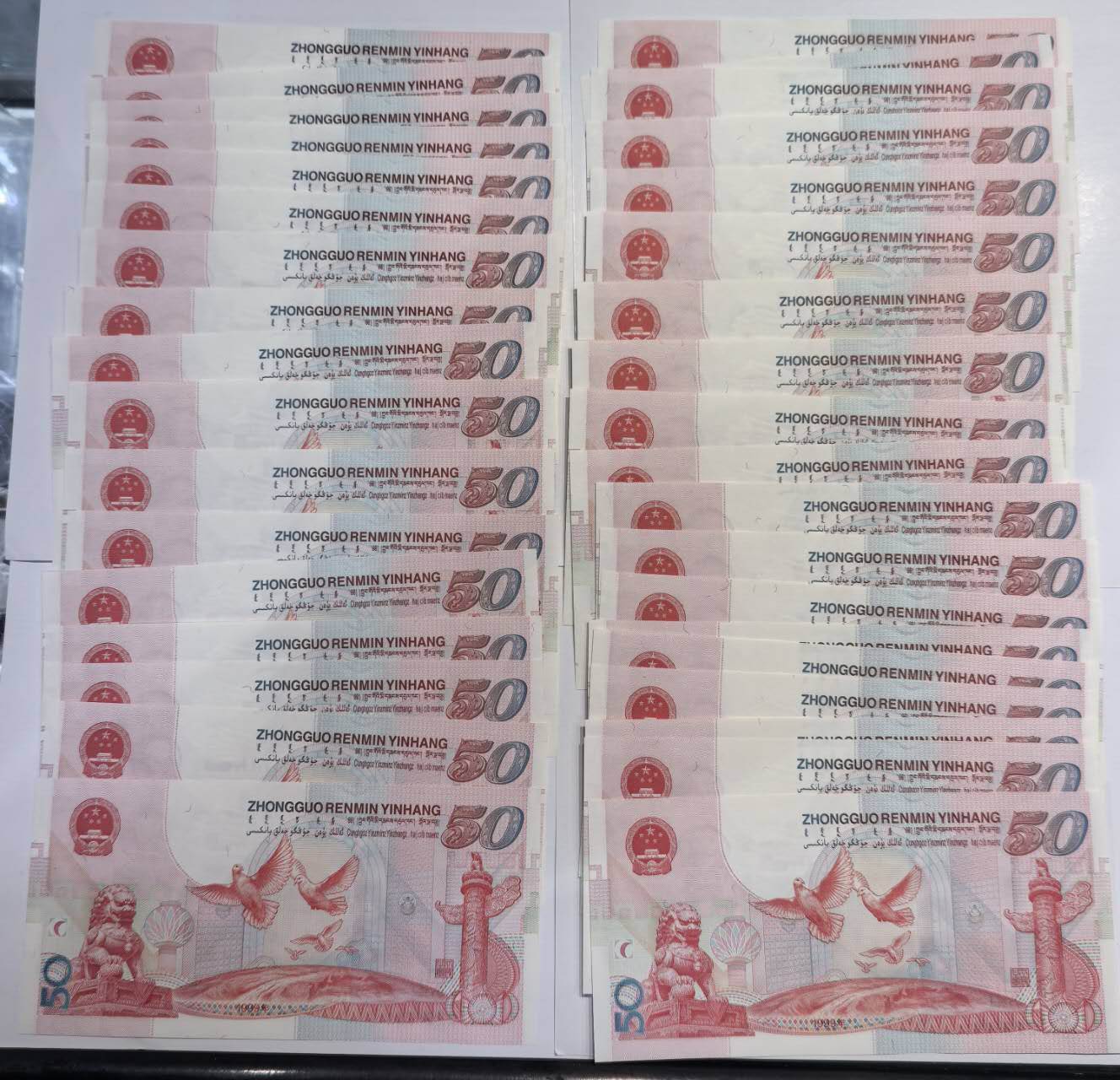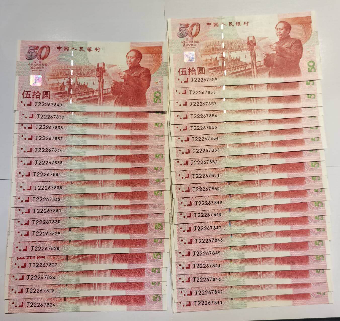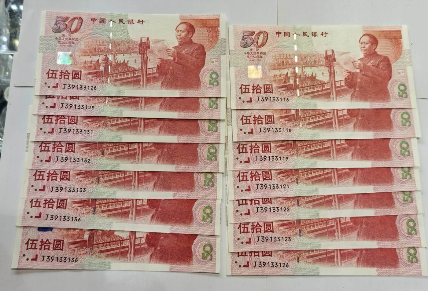 建国钞豹子头36张连号,含2个标十,(有轻微捆印),另无47有14张(直版,)