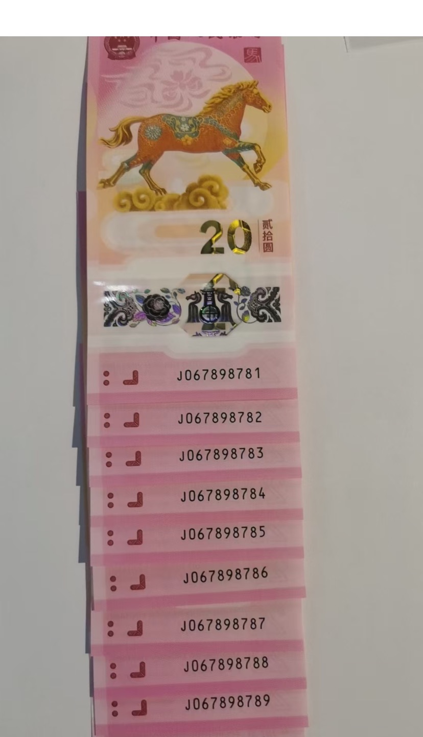 → 售马年紀念钞,金钩王标十,6789顺子头,中间顺,尾88,滿号