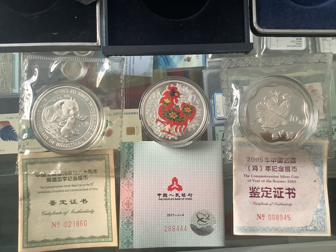 04加字猫1盎司、05梅花鸡1盎司、两枚800元一枚。