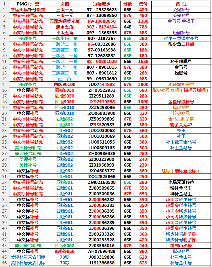 更新出售PMG三四版补号