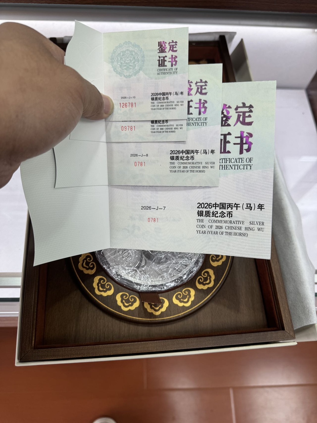 售2026年马银币套装,证书尾3位相同,证书编号0781,价格46500元,顺丰包邮!