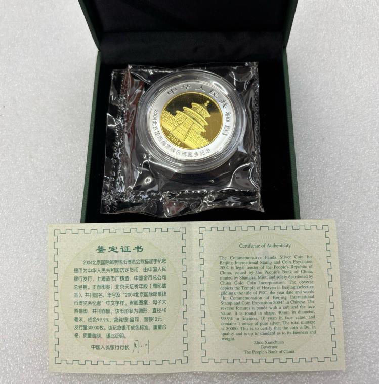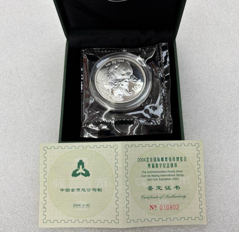 → 2004年北京国际邮票钱币博览会加字熊猫1盎司银币1枚