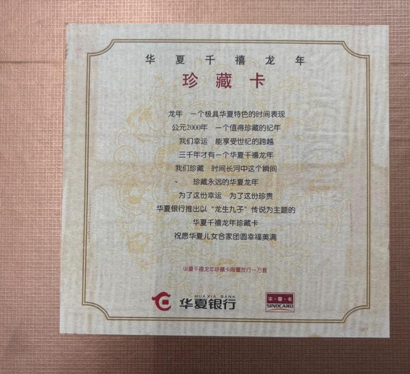→ ██2000年千禧年华夏银行生肖银行卡1套██