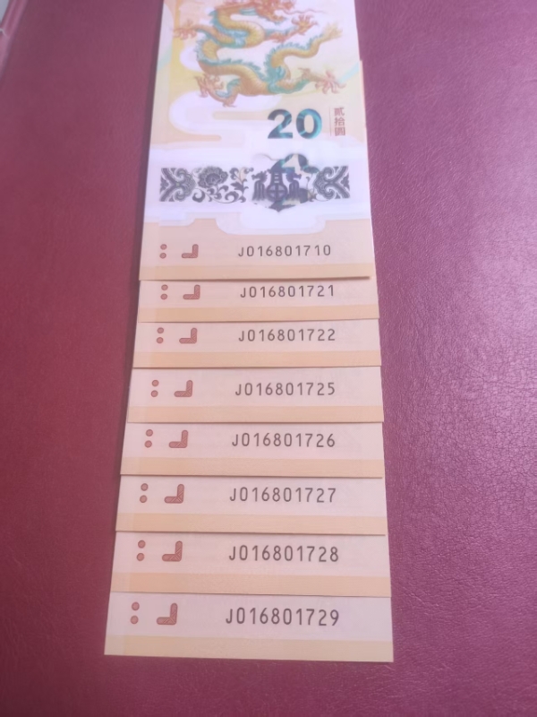 小龙钞8张,0168头,无34