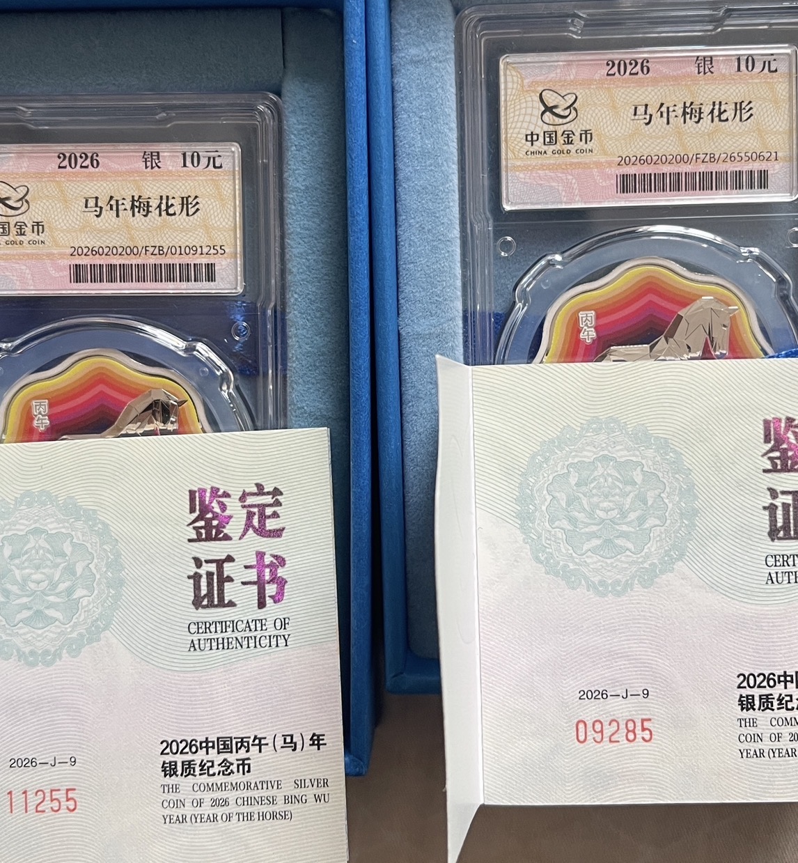 出梅花封装马二个,串号和证书号码无347,价2800一个