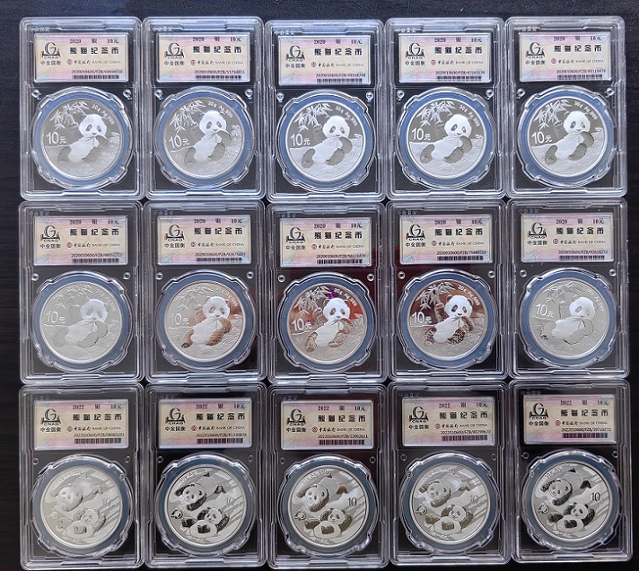 → 熊猫银币中金封装15枚===2018大脸猫一版15枚