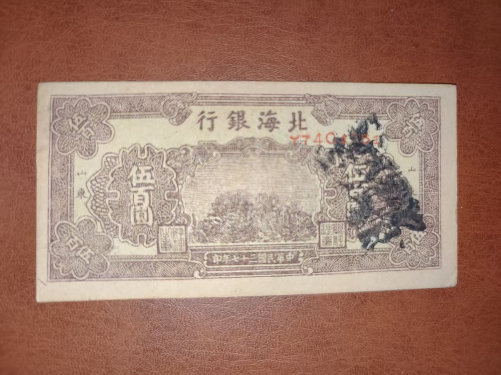→ 售1张原票无折北海银行伍百圆