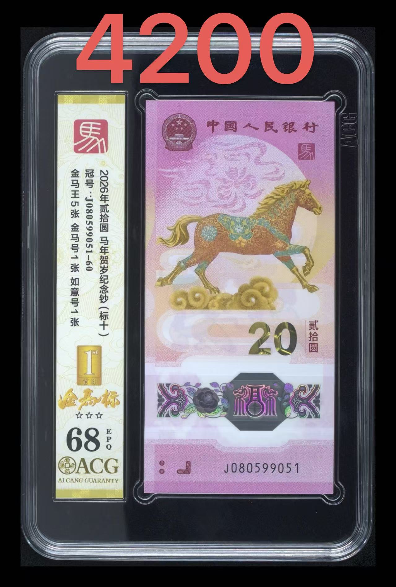 马钞独5金马王标十 51组 首日68分 5张金马王的标十