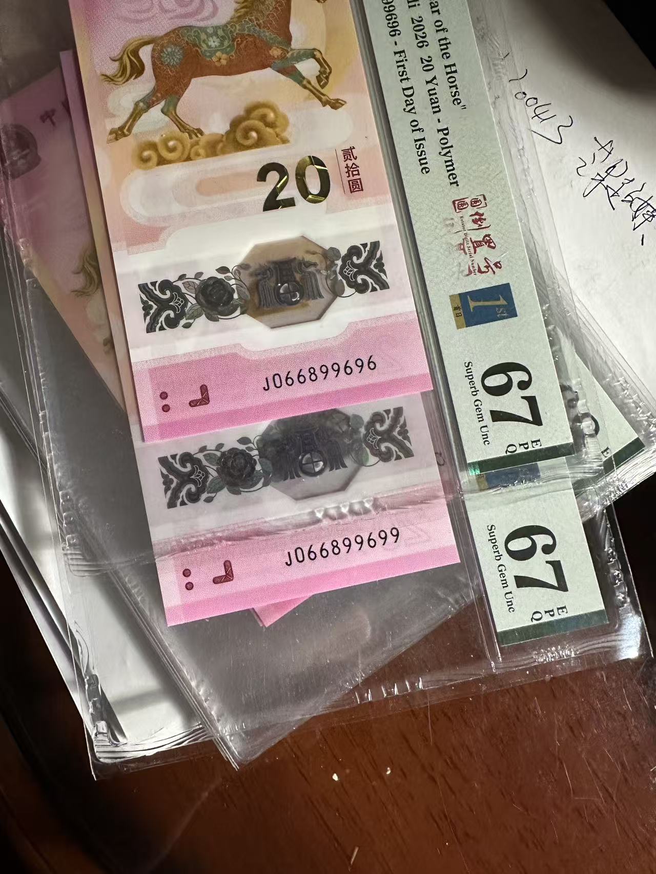 PMG首日金兰标67分,号码为J066899696; J066899699    两张一起走包邮 2080*2=4160,单张2100元/张不包邮。