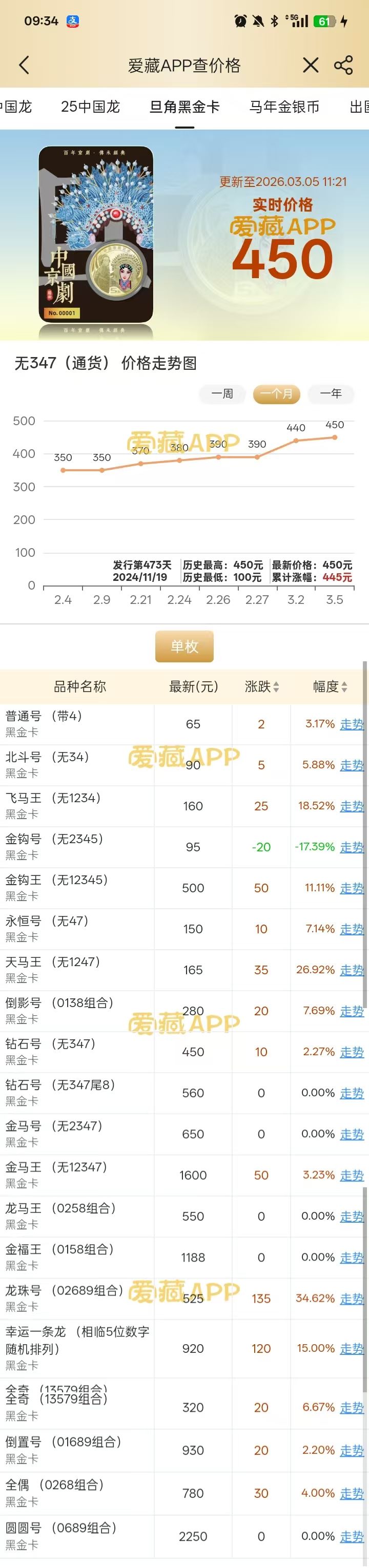 凤冠霞帔==康银阁黑金凤卡==第十六期收购价: