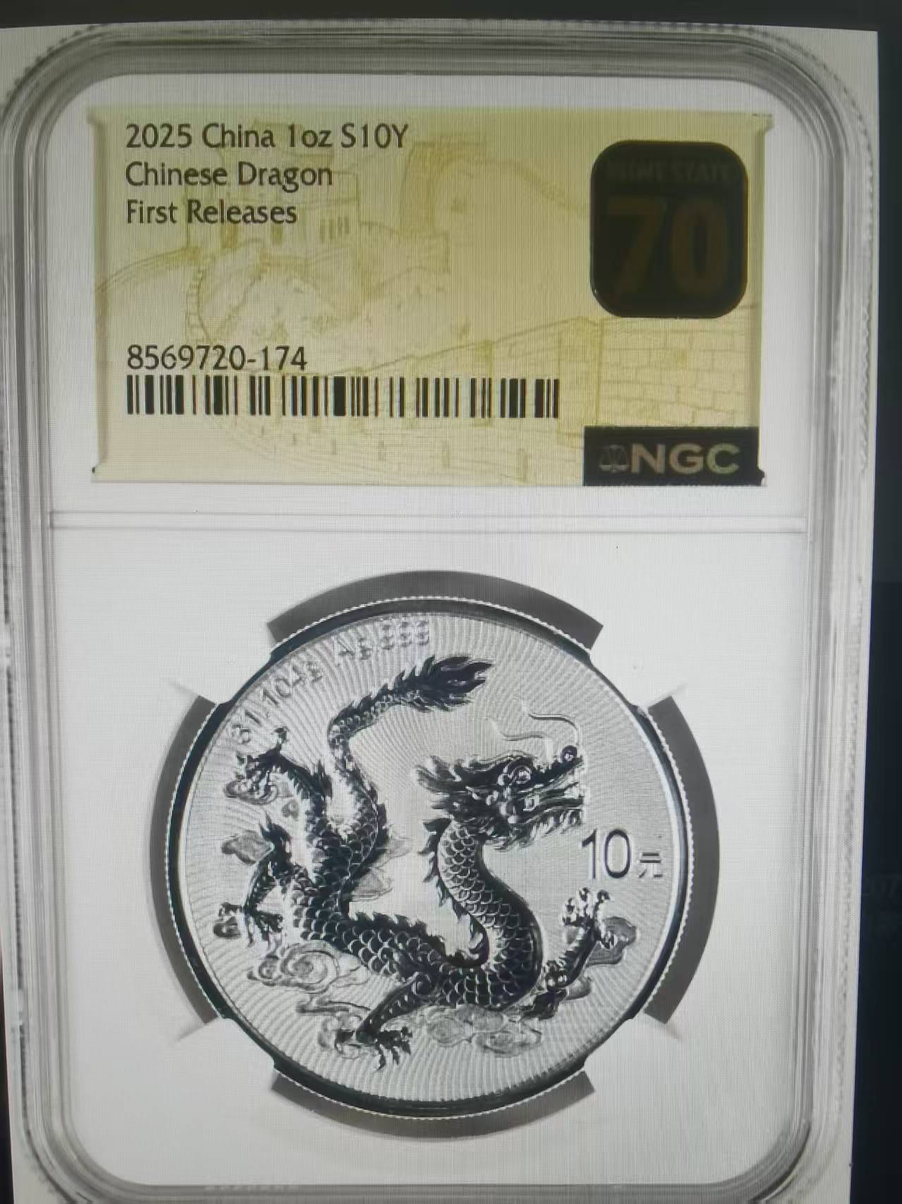 特价出售2025年中国龙NGC评级黑金标首期70分1枚