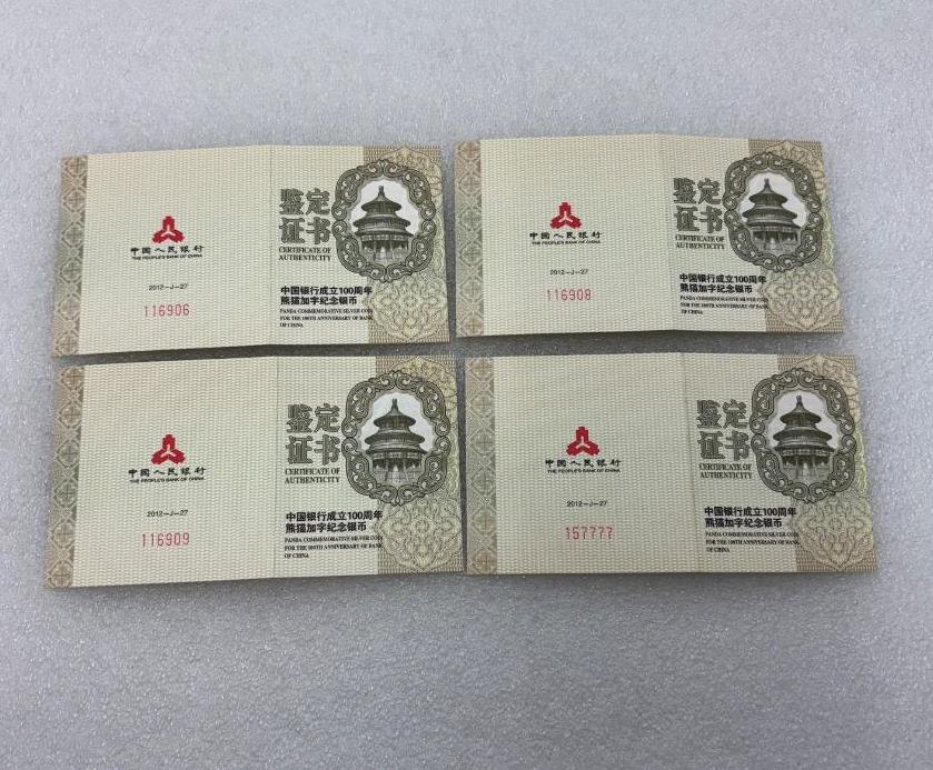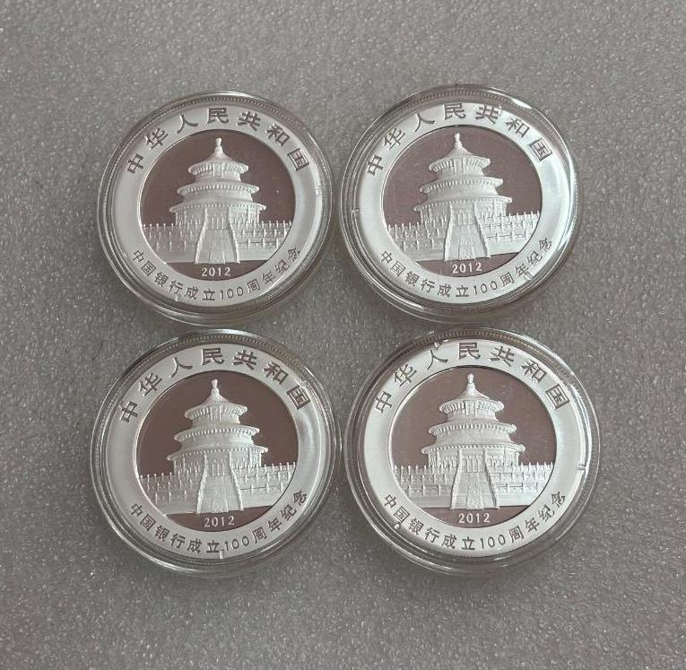 2012年1盎司中国银行100周年加字熊猫银币4枚
