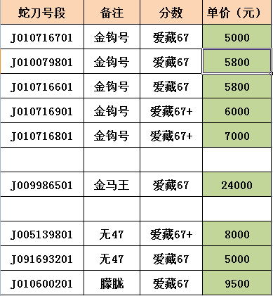 低售蛇钞刀货一些,金钩、金马、朦胧。