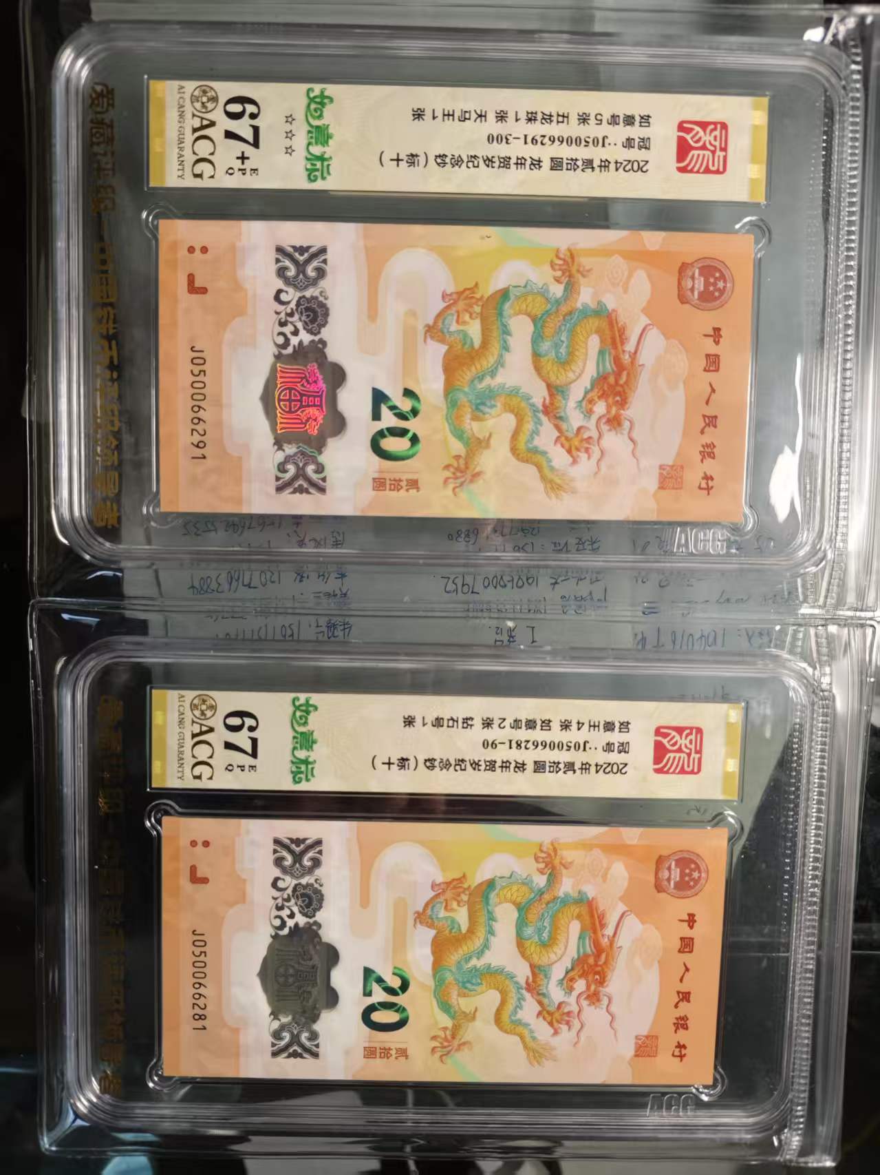 龙钞爱藏评级无347标十,一组88,一组九五至尊