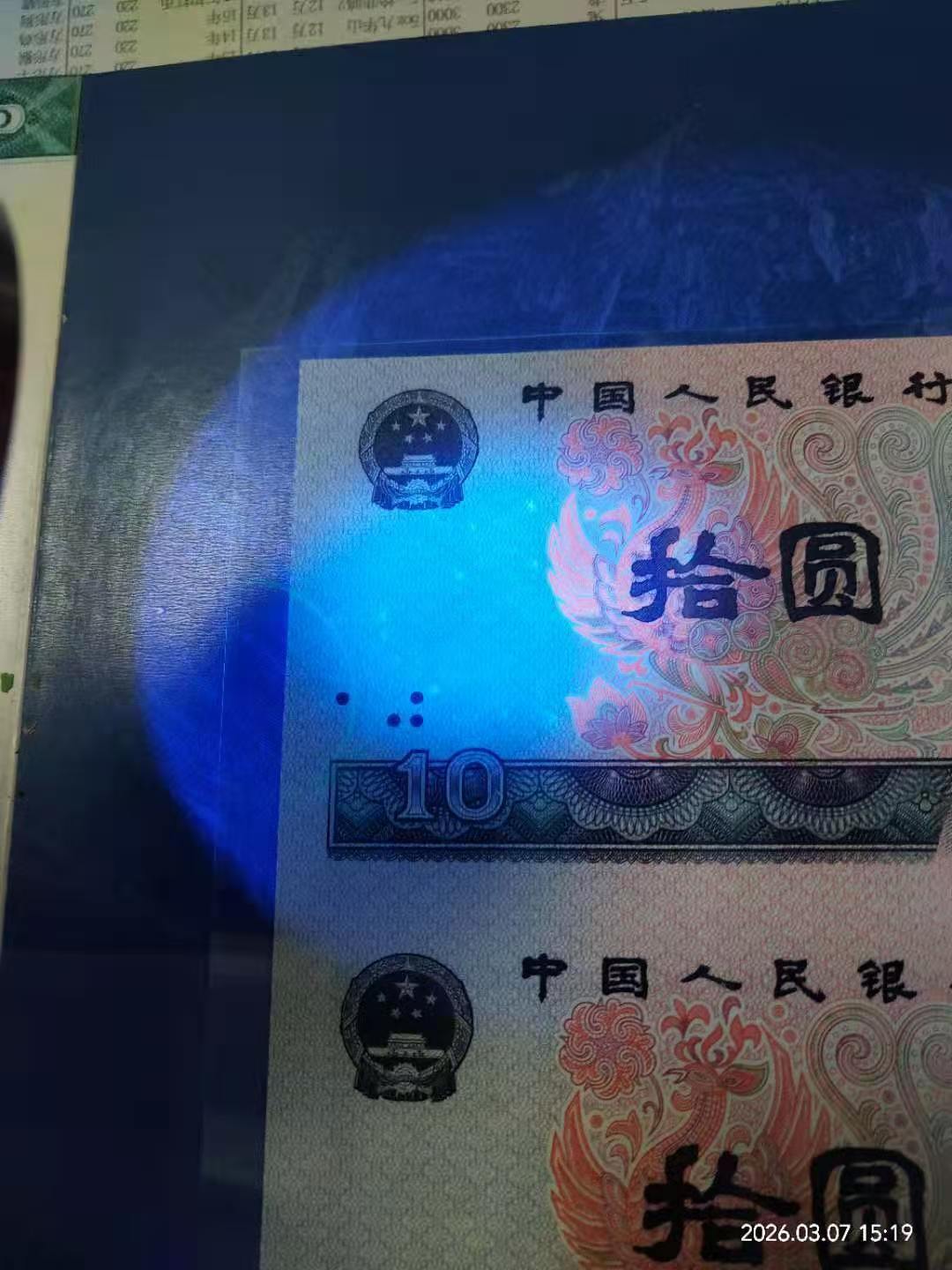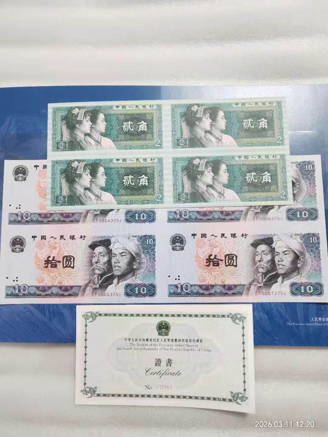 长城小四连,全程无47,紫光灯下有轻微斑,售价3800元。