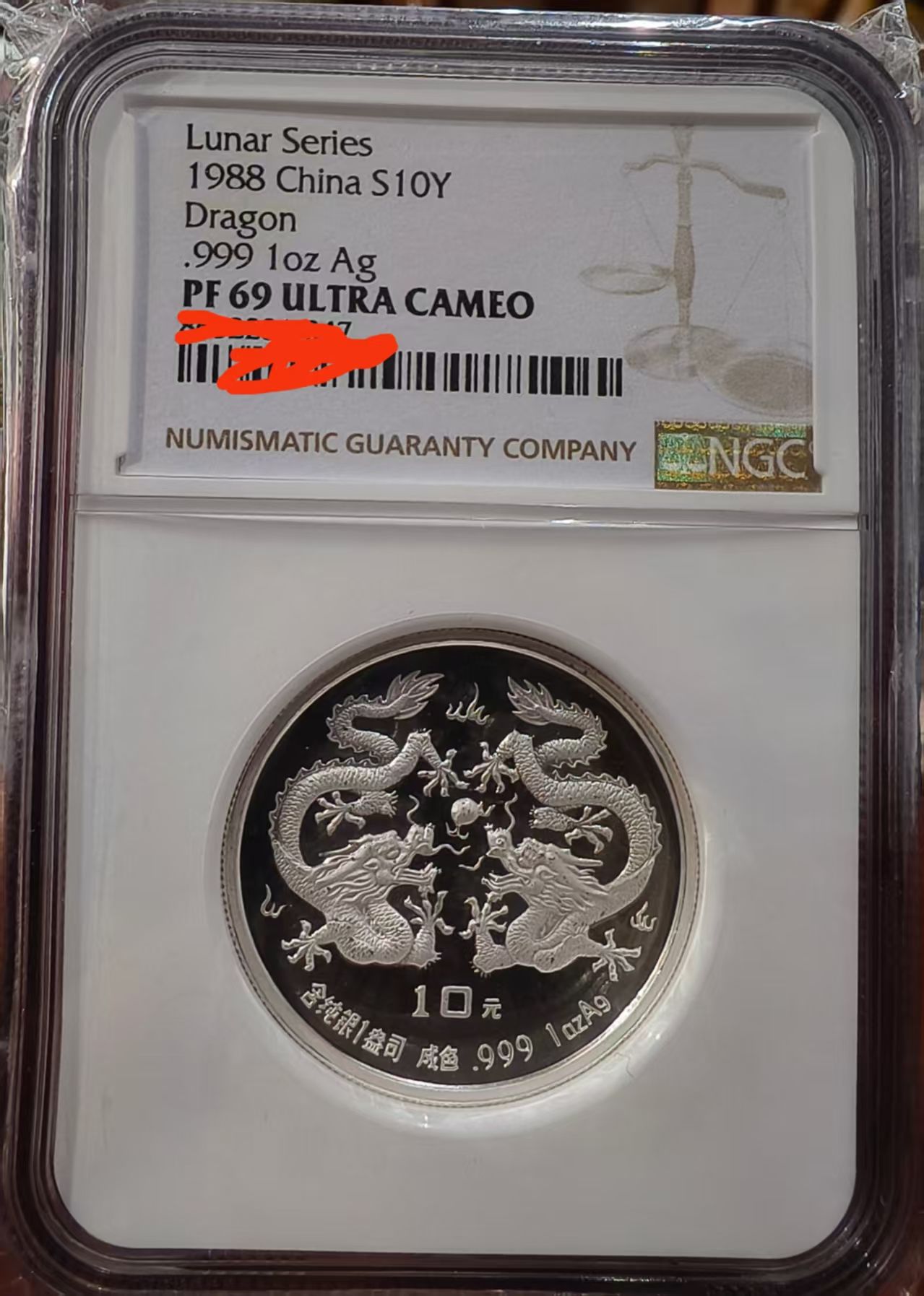 → 1988年精制加厚生肖龙银币NGC69分