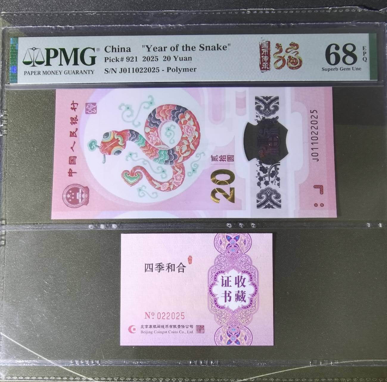 售全同号J000022014,钞及证书,5888元