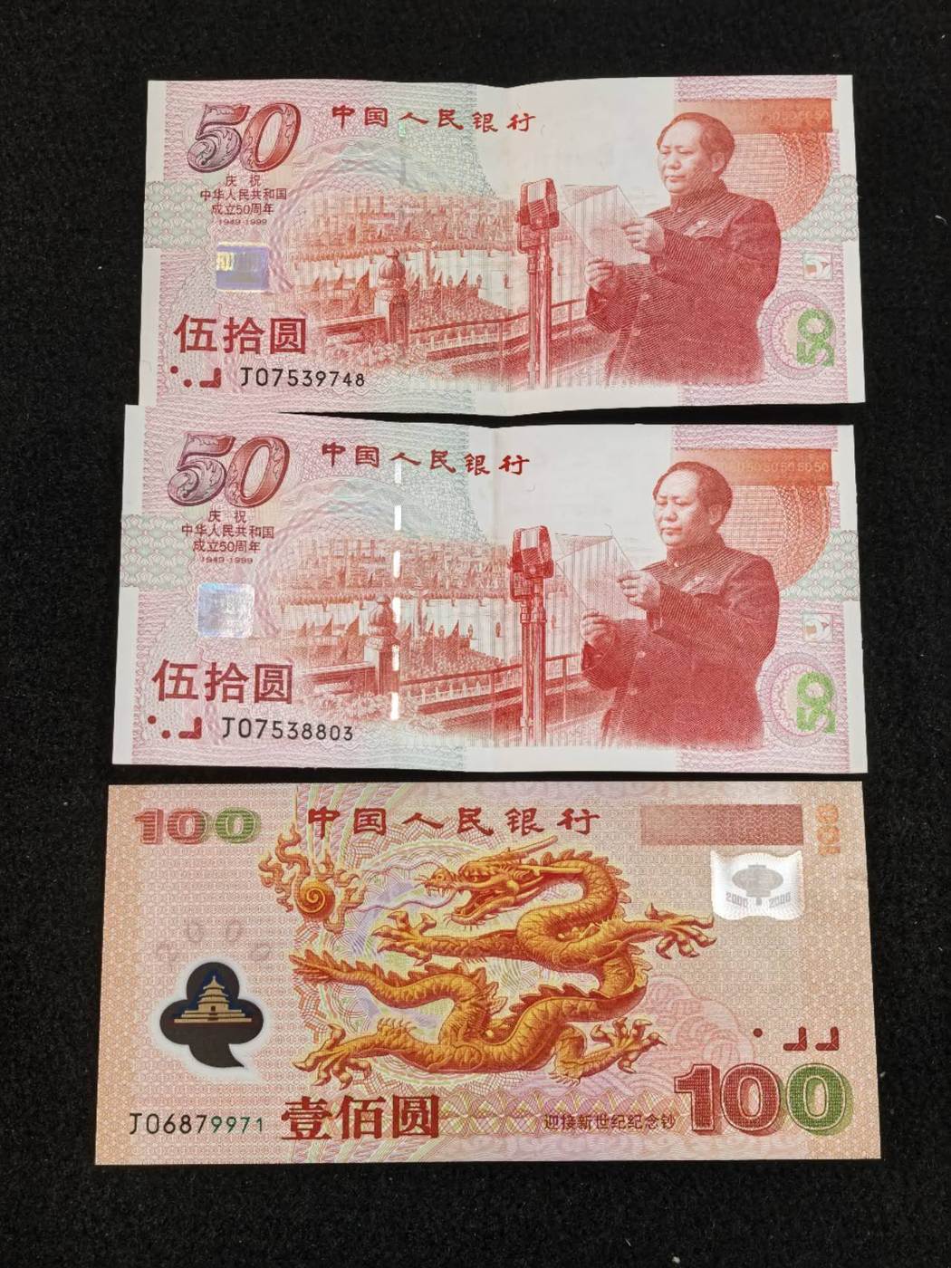龙钞右上角有个指甲印。建国钞有折痕。一起1280不议价。