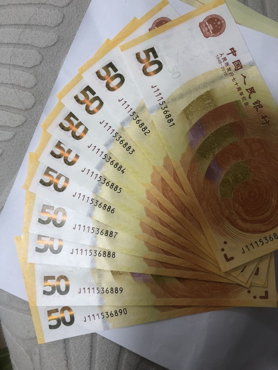 70钞火箭头888尾标十,品相一流,灯下无斑,难得一组标十。仅售1200。