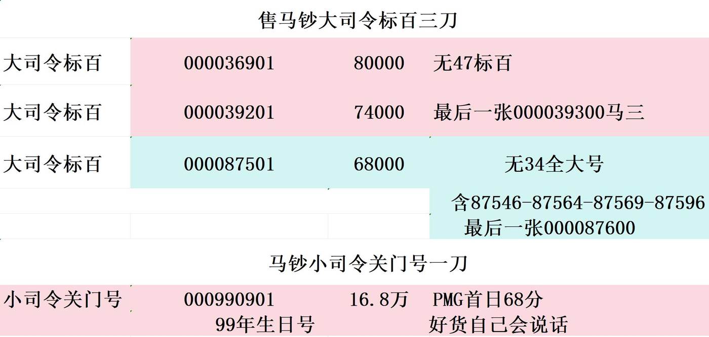 → 售——靓号马钞数二标百《马钞大小司令刀》