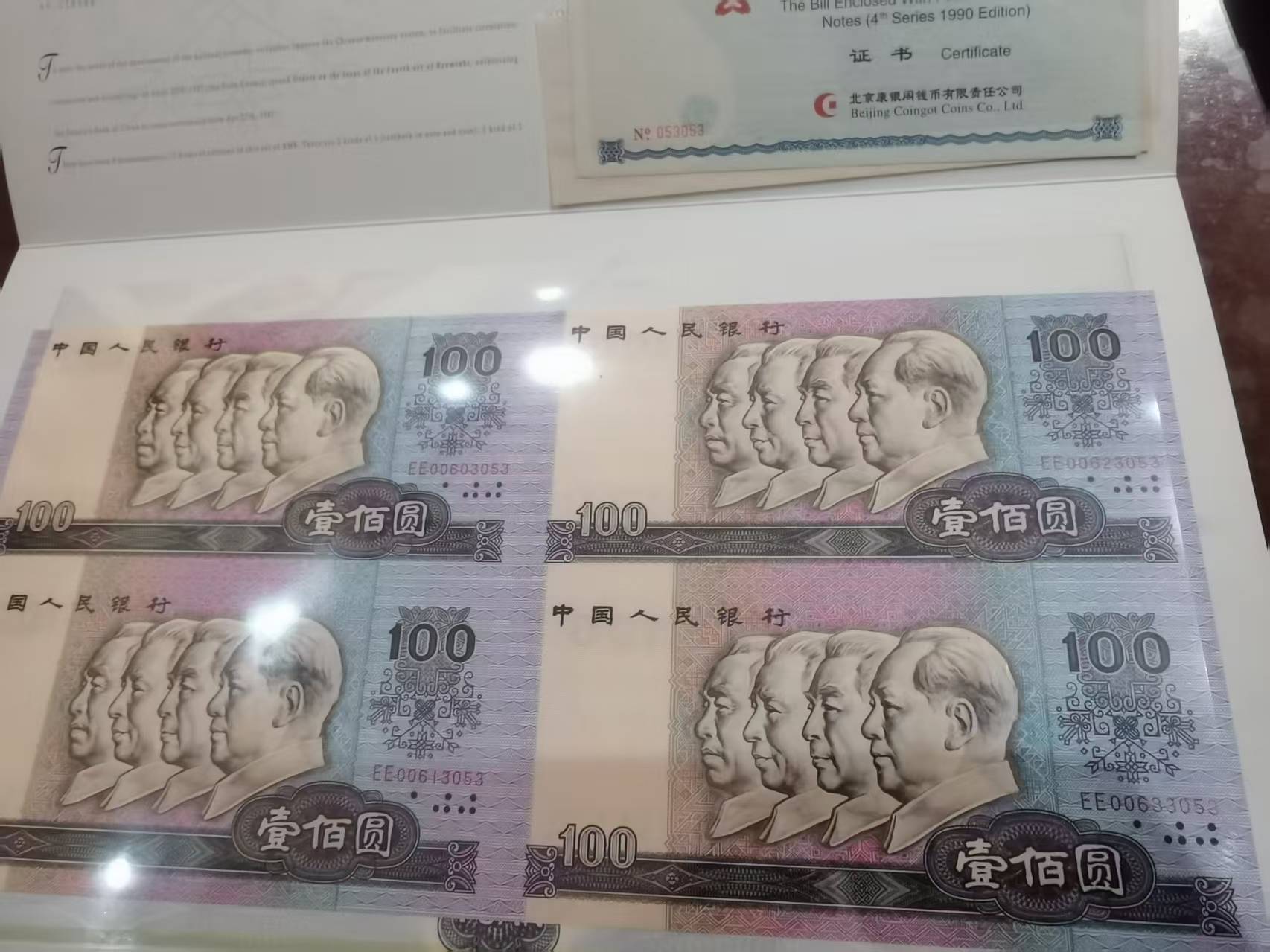 如图:90100四连体,无47,全品,灯下无斑,价格2260,不议价,分币八连体,无小册子,无证书价格800,