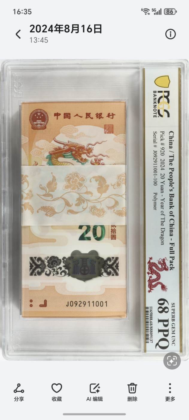 pcgs68分没评过爱藏,0129朦胧龙四.2024年8月评级的,价格155800,
