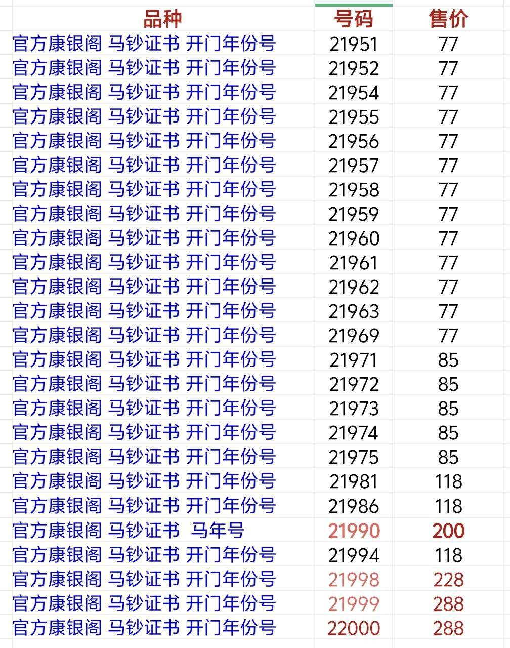 → ■马钞官方证书 超低价出售 21951-22000