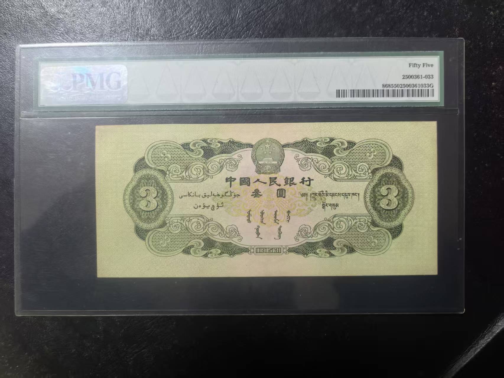 二版绿三元美评PMG55,未见明显折痕,包浆醇正,水印清晰,对光基本无黑线,售价16800包顺丰
