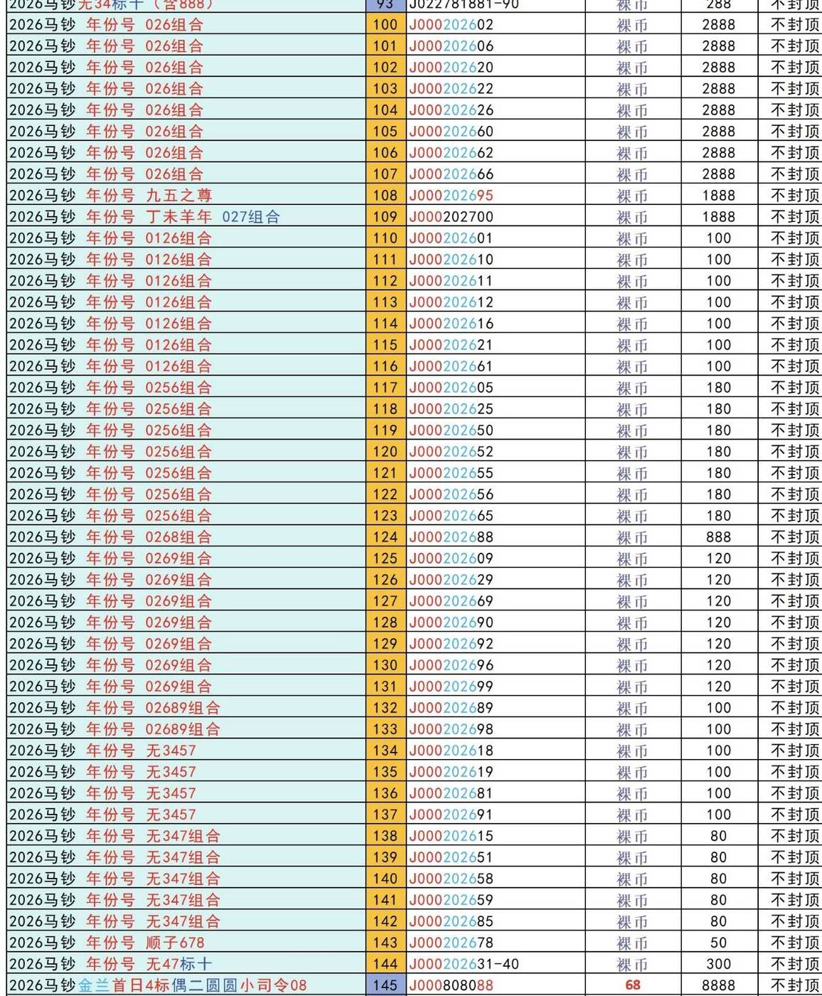 → ■马钞J000 2026 01标百刀拆 另单张出售■
