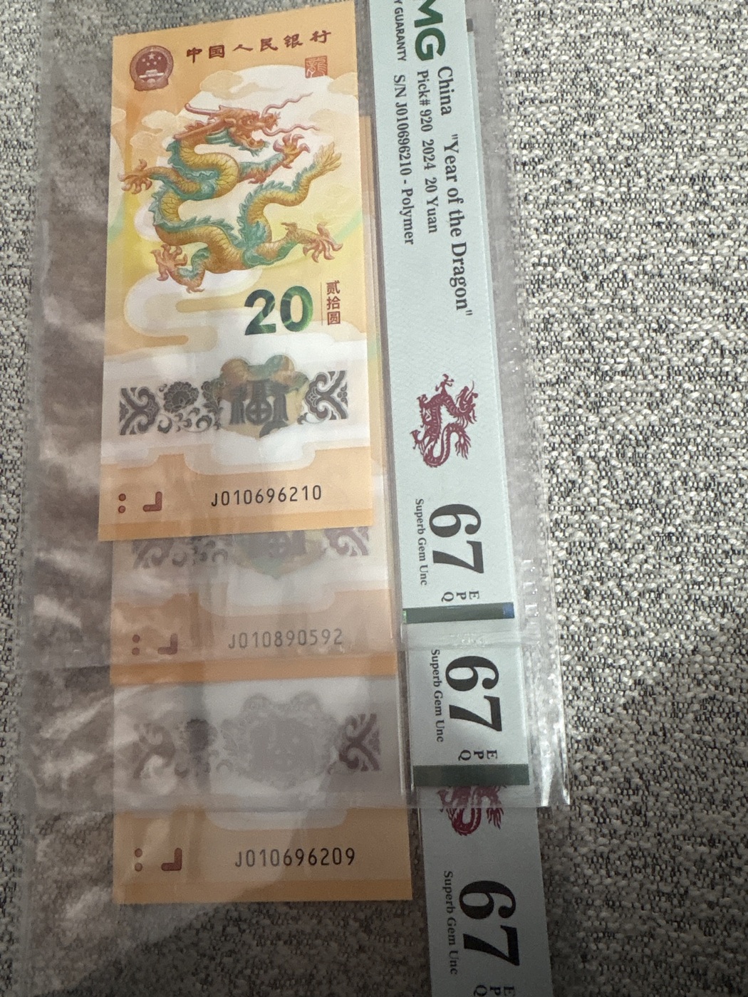 出3张67分小龙钞