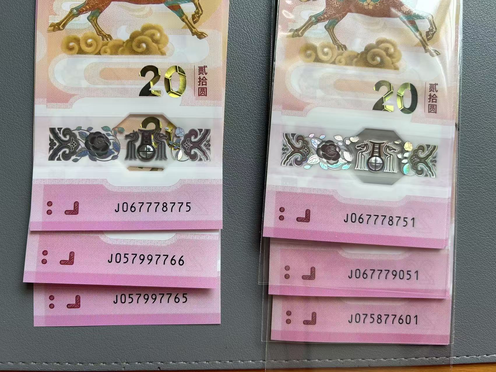 马钞056789组合,3张,70/张,有夹豹子三对子