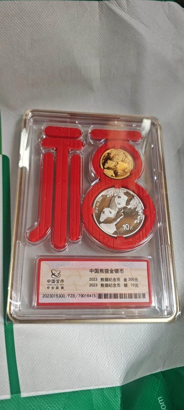 23年积福传家熊猫金银币,金15克,银30克。大盘价+120元出