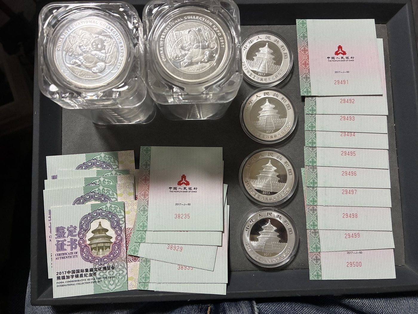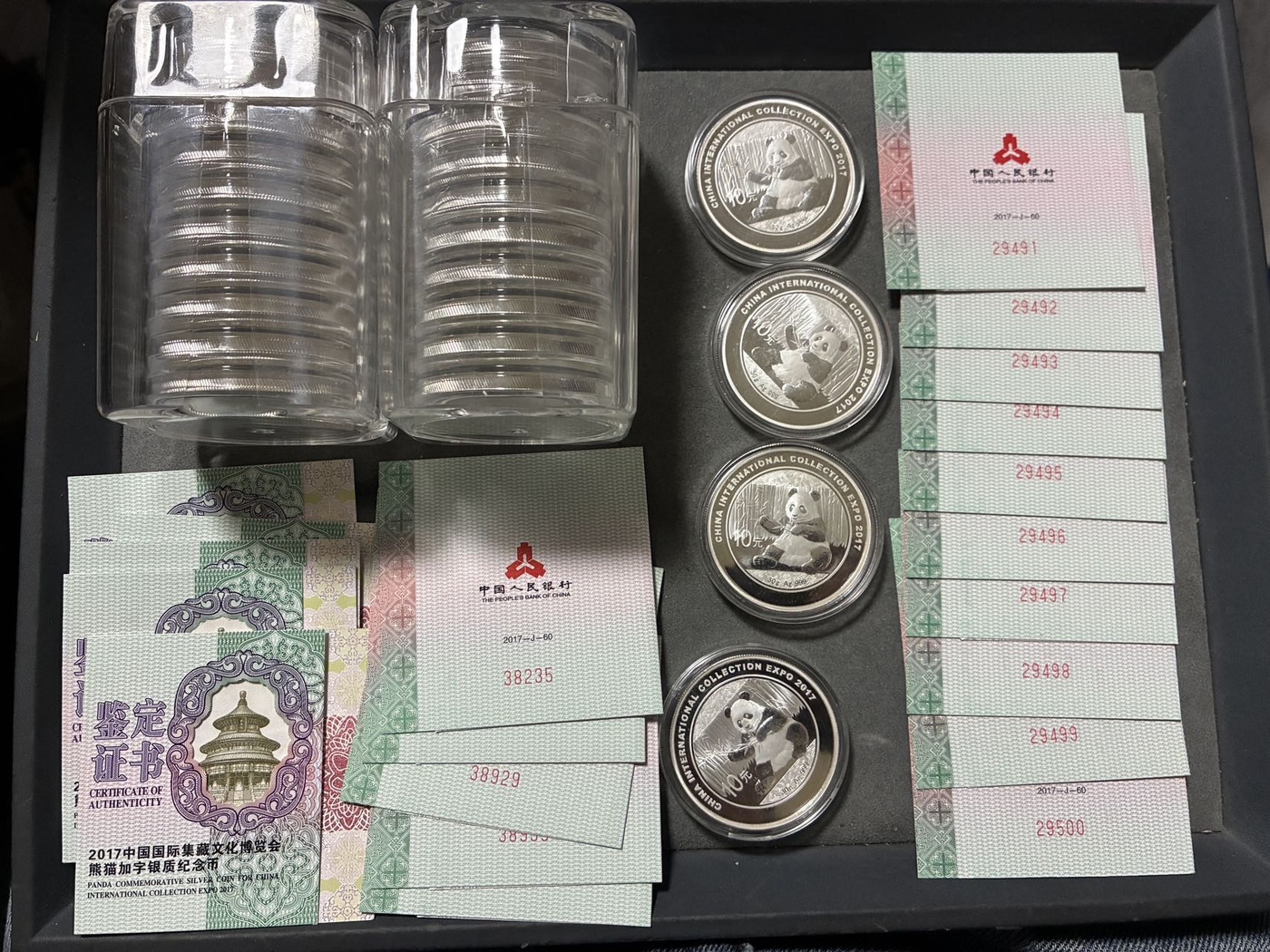 熊猫加字银币,带证书,有标十连号