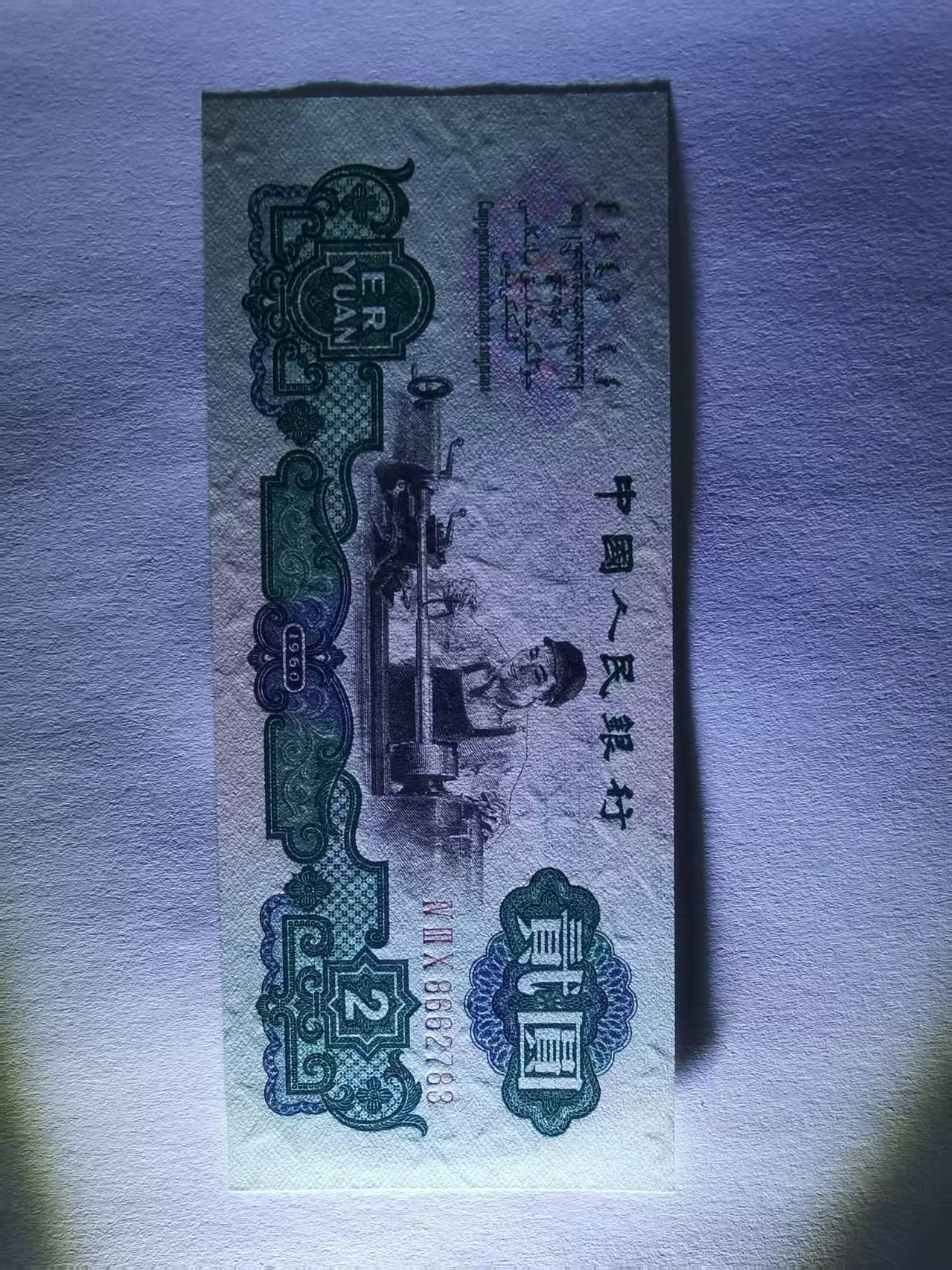 2. 收货后发现,每套的2元车工均为水洗处理,色彩发白、灯下起毛,色彩毫无光泽,比正常的原票要薄很多,其中2套2元车工背面有黑斑,且卖家未在商品链接注明。