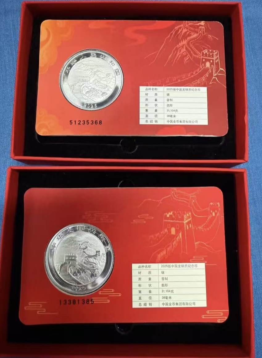 出2025中国龙银币智能卡一套,如图,有一枚是尾8,一套2100元包邮。