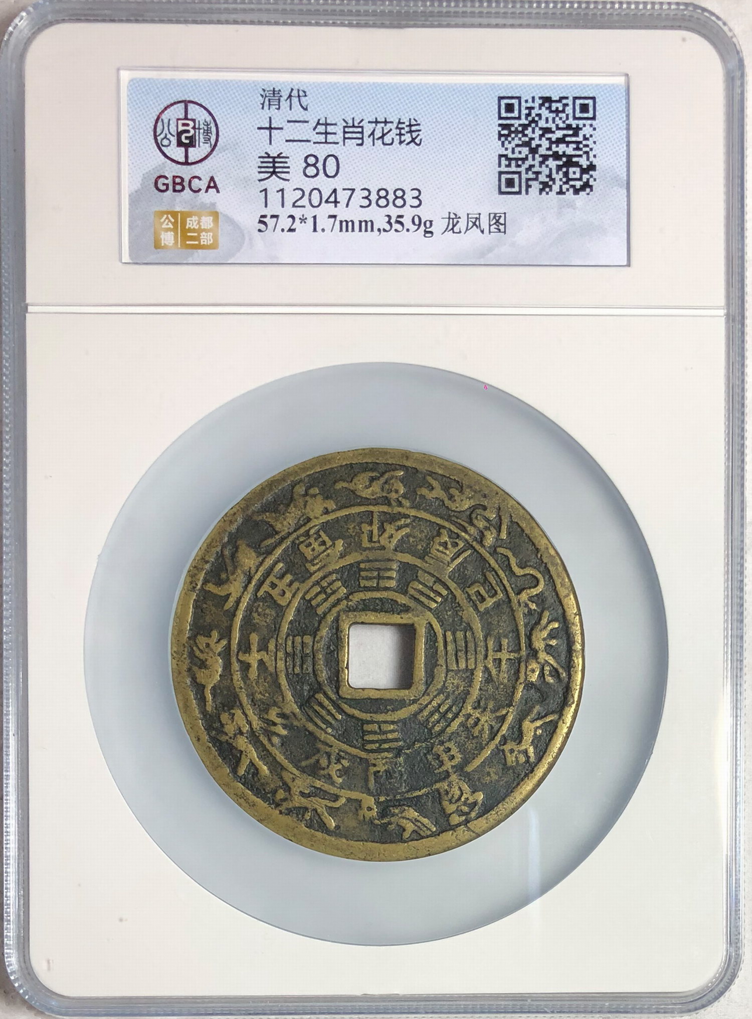 大直径57.2mm清代十二生肖花钱,龙凤图 公博美80。少见品种